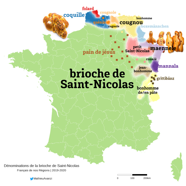 En ce début de mois de décembre, qui initie la traditionnelle période des fêtes, nous avons eu une bonne occasion pour rappeler qu’en France, la Saint-Nicolas n’était célébrée que sur une partie du territoire, et qu’elle était même associée à des débats linguistiques dignes du match pain au chocolat vs chocolatine…